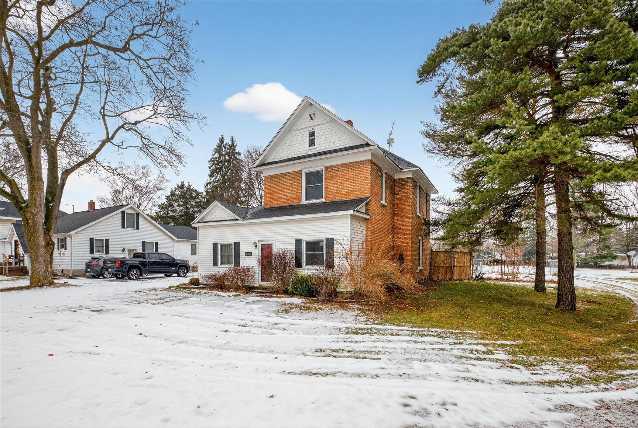 Step into timeless charm with this beautifully maintained 1896 farmhouse, perfectly blending historic character with modern updates. This spacious home offers 5 bedrooms and 2 full baths, ideal for growing households or those who love extra space. The updated kitchen features stainless steel appliances and a new reverse osmosis (RO) system, making it both stylish and functional. Original wood floors, classic crown molding, and impressive 10-foot ceilings showcase the craftsmanship of a bygone era, while thoughtful upgrades provide today’s comforts. All windows were replaced just two years ago, enhancing efficiency and natural light throughout. Enjoy the convenience of second-floor laundry and abundant storage options. Situated on a large lot, the outdoor space is perfect for relaxing or entertaining with a fire pit, partial fencing, a dedicated dog run, and room to roam. The property also includes a two-car garage with workshop plus an additional shed with electricity, ideal for hobbies or extra storage. A rare opportunity to own a piece of history with the updates buyers want—this farmhouse truly has it all.